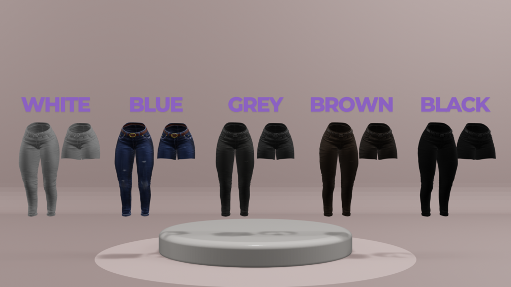 • Realistic Texturing: Detailed stitching, natural wear marks, and a fashionable belt accent give these jeans and shorts a realistic feel.